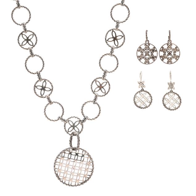 Kawung necklace featuring circular links suspending a circular open work pendant, with maker's mark and stamped 925 (24 in.); a pair of