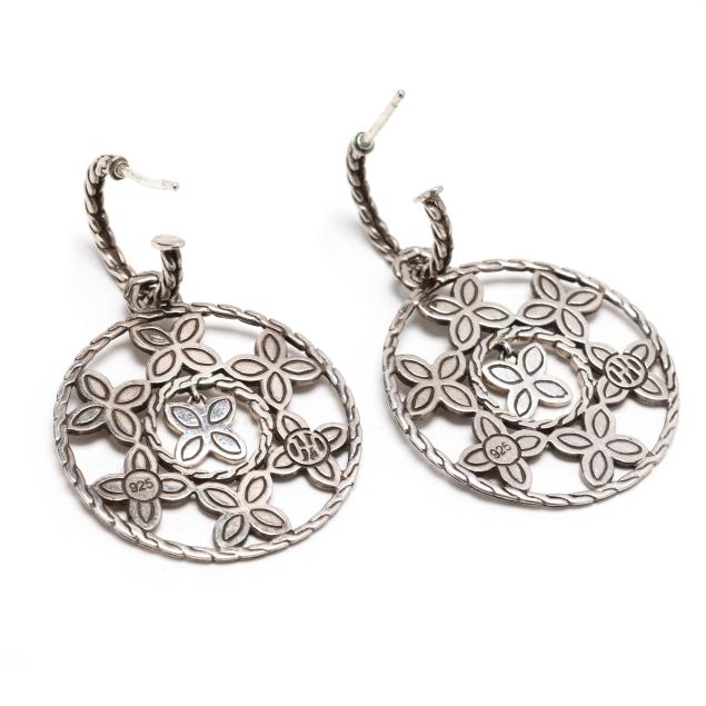 Kawung hoop earrings, suspending a circular charm, completed with posts and friction backs, signed with maker's mark and stamped 925 (1.75 in.).