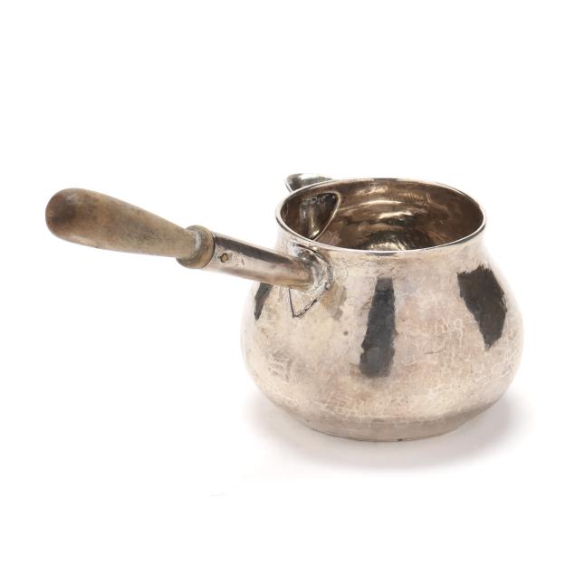 London (1727), hand wrought, with a hammered exterior and wood handle, without a monogram.