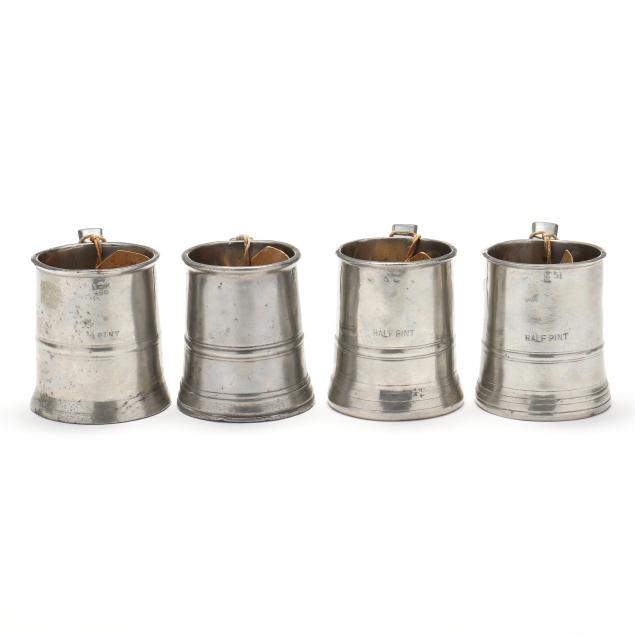 Second quarter 19th century, half pint capacity, each with crowned VR excise stamps near rim, one earlier mug with outer punched marks.