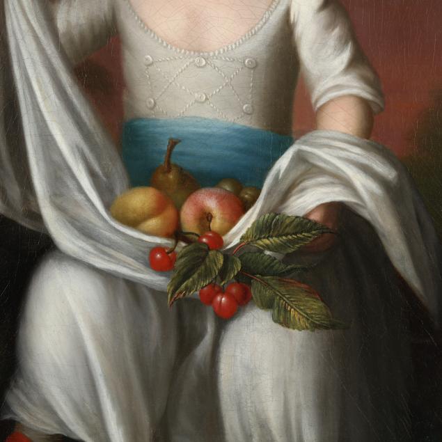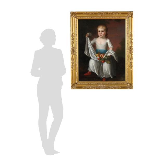 From a Private Collection, Washington, D.C. Allover stable craquelure; minor scattered retouch visible under UV light to background and along sitter's neckline; on new stretchers; frame with later gold paint.