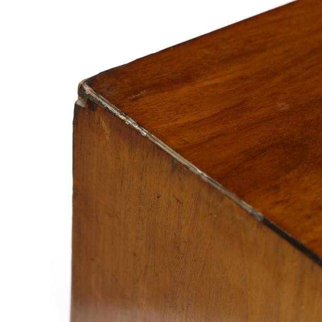 All over old marring and dark staining; later pulls with plug holes; scattered veneer chips.
