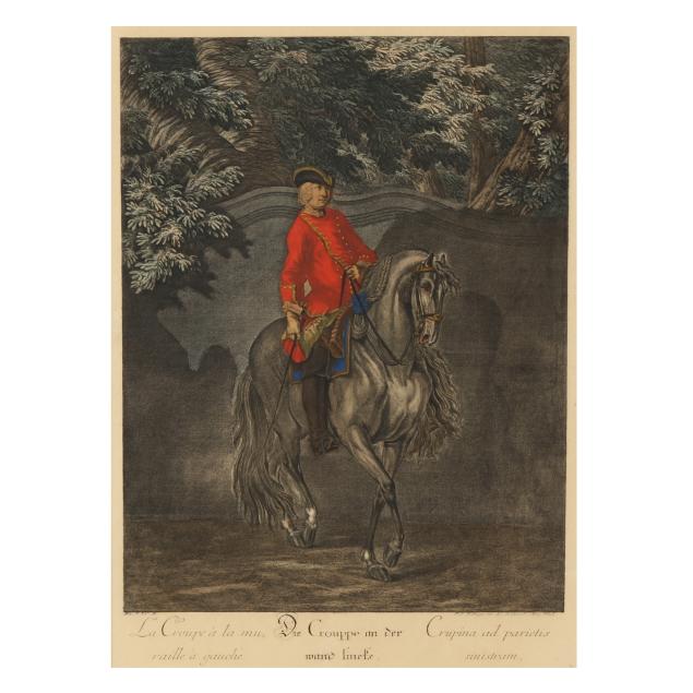 Hand-colored etching and engraving on paper, inscribed at lower margins, matte and framed below glass.