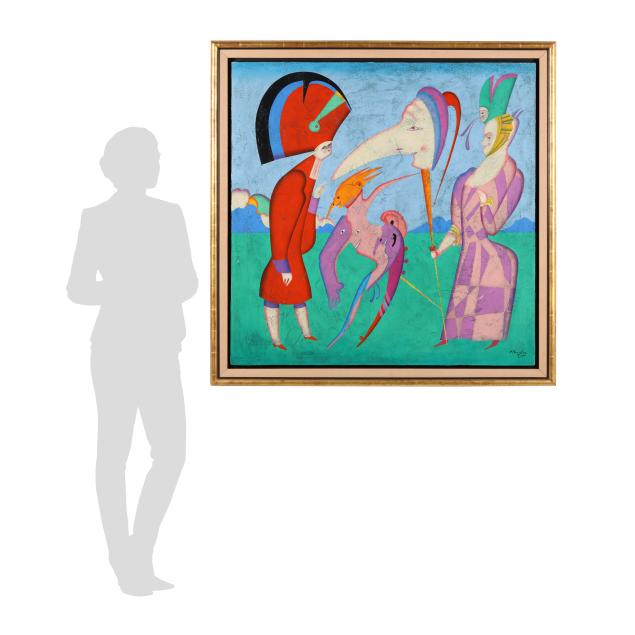 Oil on canvas, 1985, signed and dated at lower right, also signed and dated on the backing sheet, presented in a gilt floater frame with linen liner.