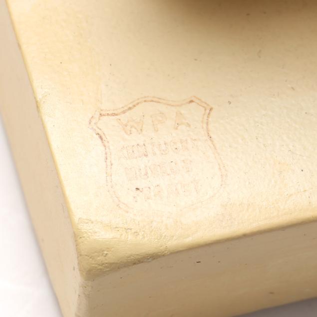 From a Private Collection, Washington, D.C. During the Great Depression, the Works Progress Administration (WPA) was a program created by executive order in 1935 to provide jobs for millions of unemployed Americans. Artists were hired to create murals, paintings, drawings, and sculptures for public buildings and educational purposes. Among the items made were a collection of plaster building replicas. Pieces are marked with WPA and sometimes have the artist's name included.
