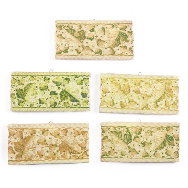 A Set of Five French Faience Pottery Tiles