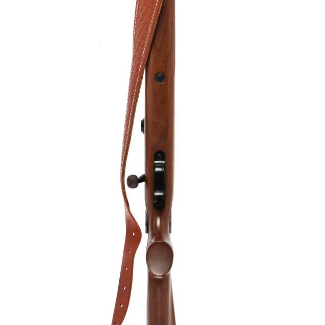 Serial number C6481285 on left side of receiver, 22 in. blued barrel marked REMINGTON ARMS COMPANY, INC. ILION, N.Y., U.S.A. / 30-06 SPRG with fixed front sight and TASCO GOLDEN ANTLER GA3-9X40WA duplex reticle scope, Millett one piece base and 1 in. scope rings, checkered walnut stock and forend, raised comb and cheek piece with original buttplate, leather shoulder strap with tooling and marked HUNTER.