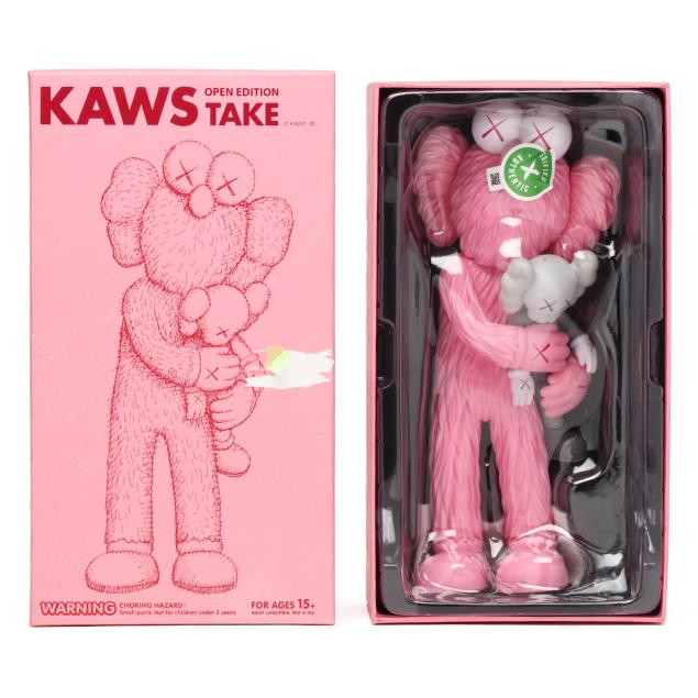 2020, resin, paint, vinyl, part of an unnumbered open edition, signed on the underside KAWS"20 / TAKE / MEDICOM TOY/CHINA. Includes box with conforming clear plastic inserts.