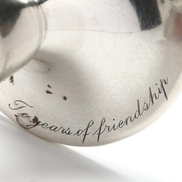 Period mark circa 1965 - present, pattern number 23426, the footed vase in the form of a calla lily, inscribed "To years of friendship" to the foot and "J & R" to the underside.