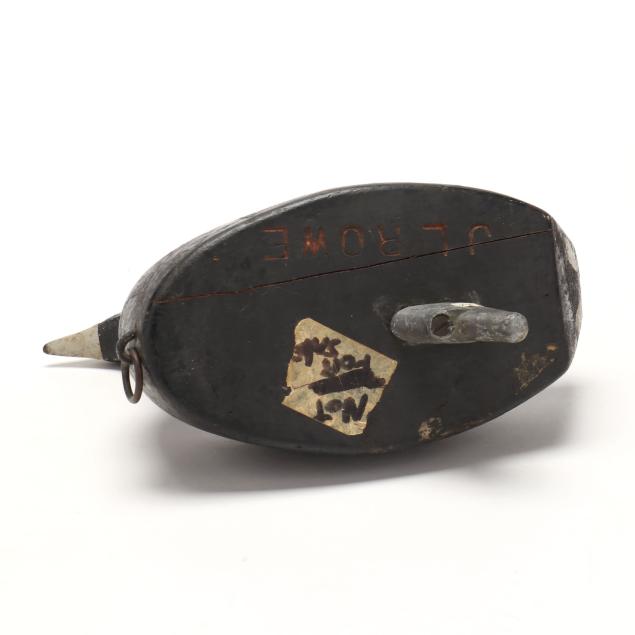 Back Bay, Virginia, circa 1940, carved and painted wood, cast aluminum head and swing keel, branded JL ROWE.