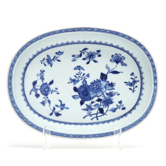 Circa 1800, both are unmarked, the first a lozenge form platter featuring a finely painted landscape with two phoenix birds