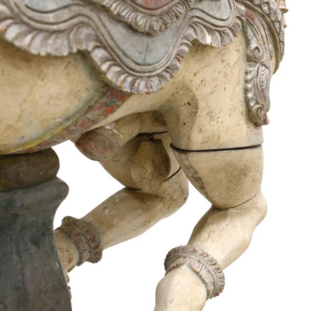 Some loss to pigments; some cracks with scattered stress cracks to wood; some nicks and losses to edges; break with loss to both tails at end; one horse with loss of knob to mane and back of saddle.