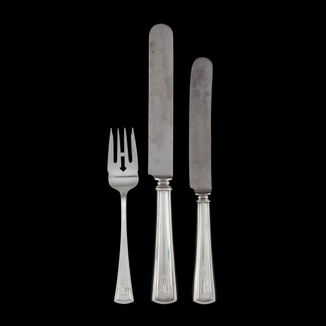 (49) pieces to include: (6) dinner knives (9 3/4 in.); (6) luncheon knives (8 5/8 in.); (6) dinner forks (7 3/4 in.); (8) luncheon forks (7 1/4 in.); (6) salad forks (6 in.); (11) teaspoons (5 3/4 in.); and (6) tablespoons; this lot also includes (6) Gorham