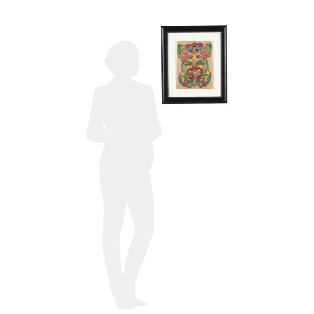 From the Collection of Mr. Jonathan P. Alcott, Raleigh, North Carolina Minnie Evans was the longtime gatekeeper at Airlie Gardens in Wilmington, North Carolina. A self-taught artist, her paintings are in numerous prominent collections including the Museum of Modern Art, New York, the Smithsonian American Art Museum, Washington, D.C., the Abby Aldrich Rockefeller Folk Art Museum, Williamsburg, Virginia, the North Carolina Museum of Art, Raleigh, the Mint Museum of Art, Charlotte, North Carolina, the High Museum of Art, Atlanta, Georgia, the Whitney Museum of American Art, New York, and many more.