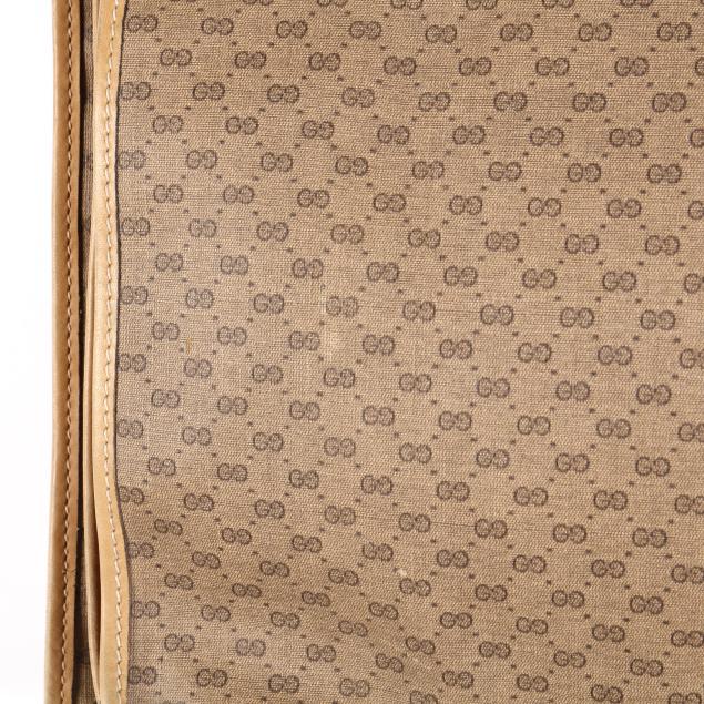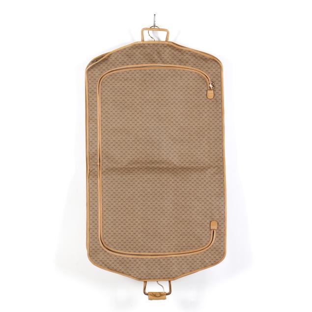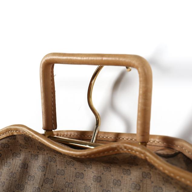 Brown monogram canvas with tan leather accents and rolled leather handles, the front with logo, large zipper pocket with garment strap and serial number tag, the interior with two hangers and leather address tag, serial number 20.011.0050.
