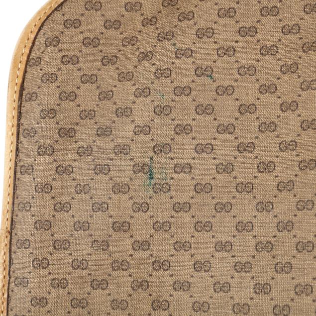 Some scuffing to canvas; soiling to interior; wear to leather trim.