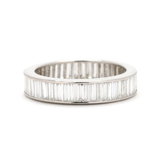 Channel set with straight baguette cut diamonds weighing approximately 3.40 total carats (H-I color, VS2-SI1 clarity), testing platinum.