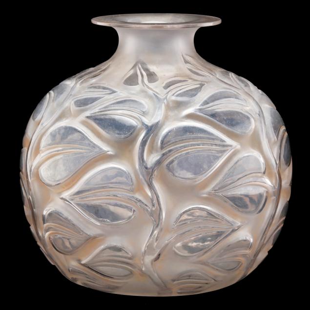 1926, clear molded glass with frosted and slight amber tone highlights, underside foot with engraved script "R. Lalique, France, No. 977".
