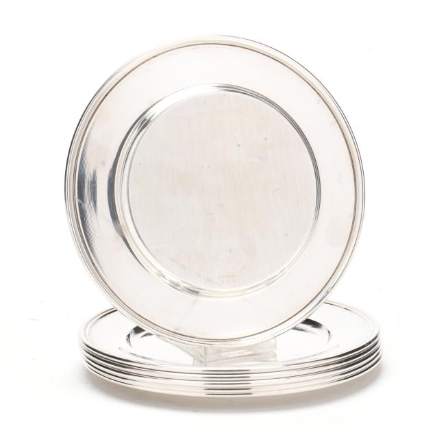 Including (5) with mark of S. Kirk & Son Inc., pattern number 58; and (1) with marked "Sterling", pattern code 600, with a reeded rim; all with script monograms to rim.