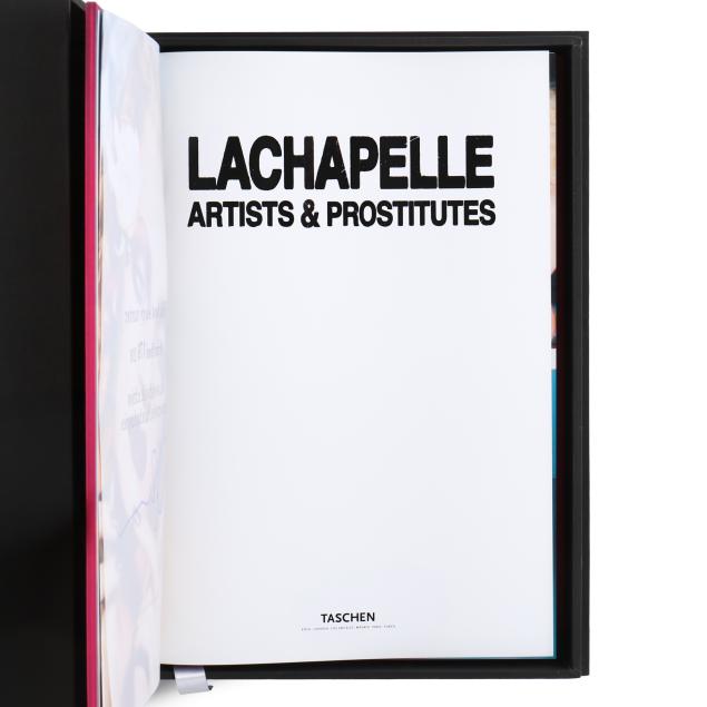 "Celebrating the visionary LaChapelle's truly extraordinary photography, this...book is packed cover-to-cover with vibrant full-bleed images; the best of his entire career to date. Bursting at the seams with spectacle and drama, and saturated with colors only LaChapelle can realize, this limited edition pays tribute to the most daring and ambitious photographer in the history of portraiture." (https://www.taschen.com/en/limited-editions/photography/02606/david-lachapelle-artists-and-prostitutes/)