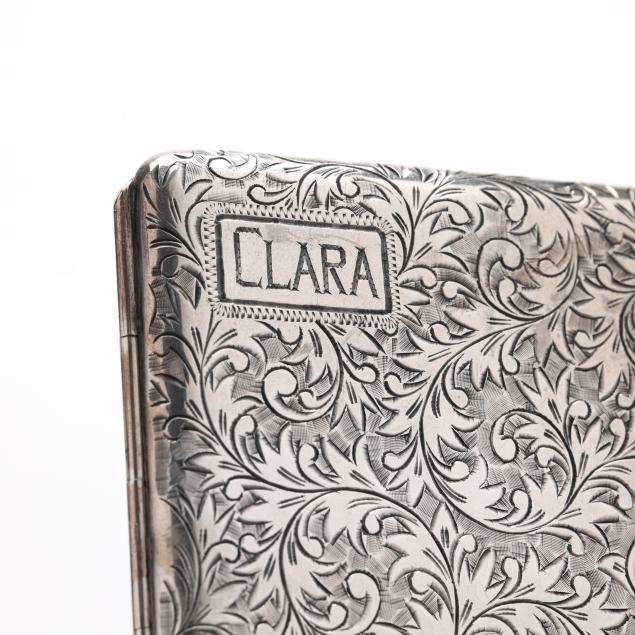 Early 20th century, with allover engraved foliate decoration, monogrammed "Clara", with gold wash band to the interior.