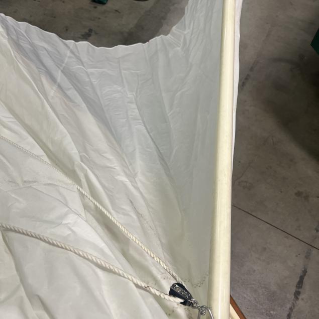Cushions, covers, rigging, and sail in very good condition; bottom paint is aged; tires on trailer are aged, but in good condition; all lights operational; no apparent concerns.