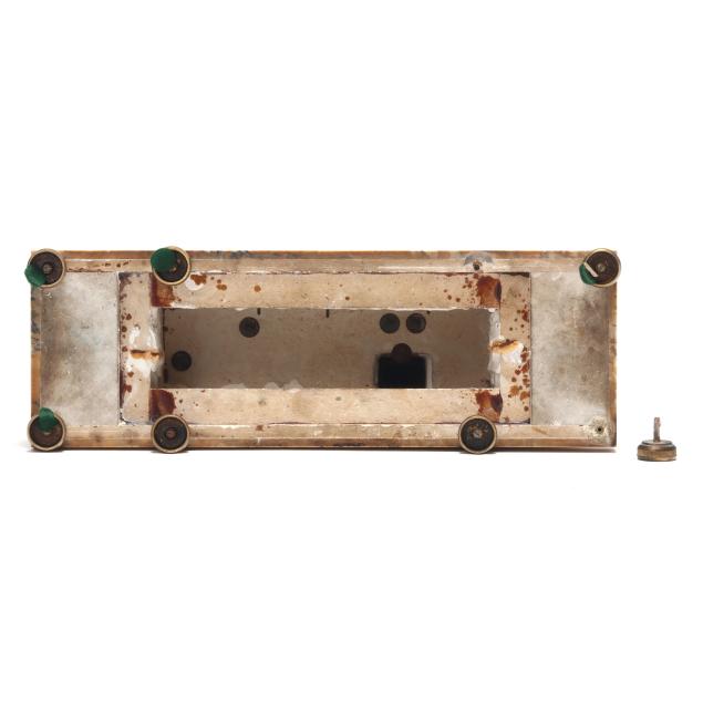 Rubbing and losses to gilt; bronze cherub with some looseness; lacking pendulum; case missing one foot, with some areas of remounting to feet mounts.