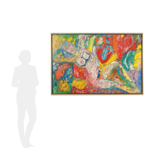 Oil on canvas, 1969, signed and dated at lower right, inscribed to the verso, framed.