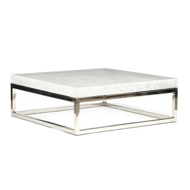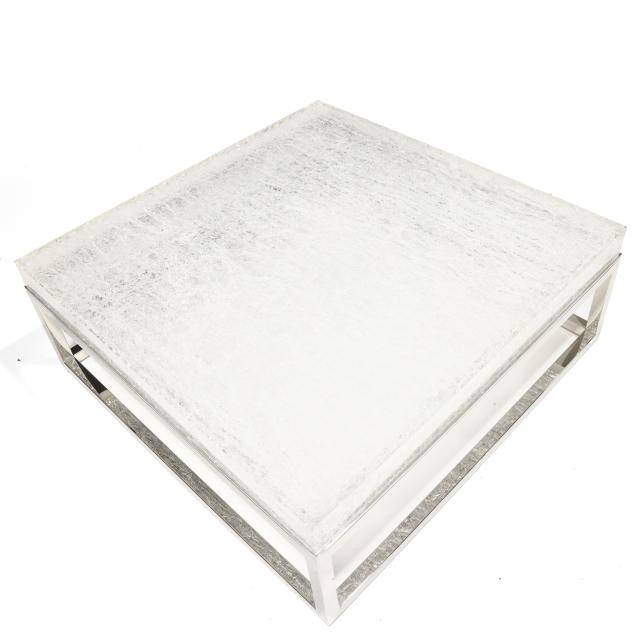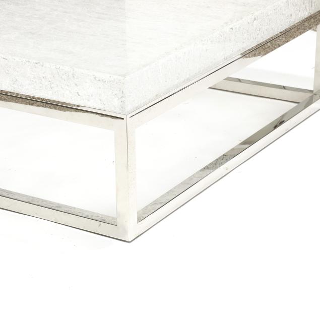 Contemporary, cast acrylic top set on a polished tubular steel base, appears unmarked.