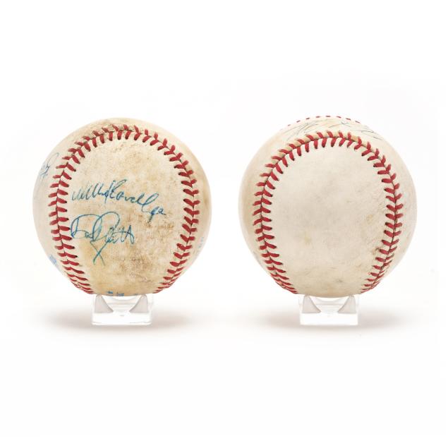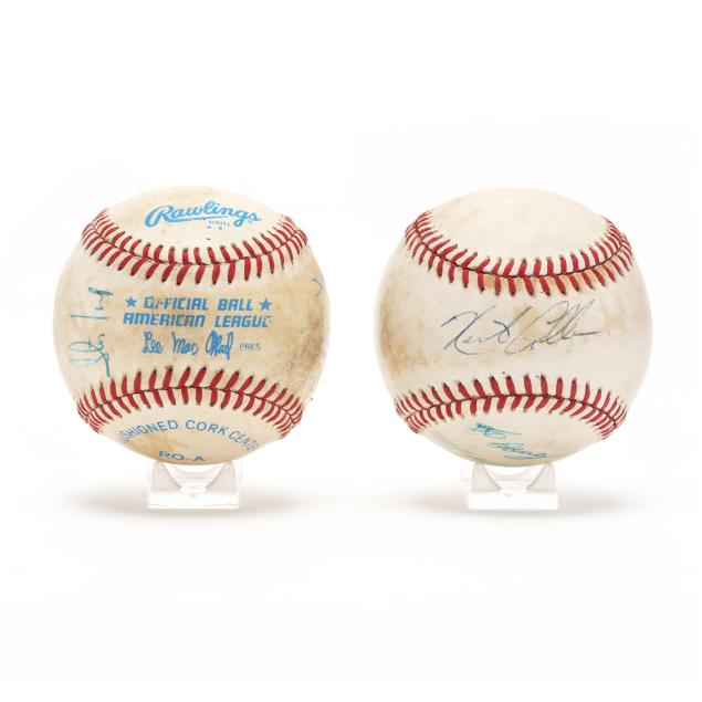 Ball #2: ink signed by Lou Pineilla (Yankees player and manager); Don Mattingly (Yankees player and manager); Willie Randolph (Yankees); Dave Righetti (Yankees); and two illegible signatures