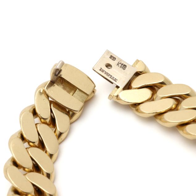 Bracelet with flat curb links, completed with a box clasp, signed and stamped K18 / V795 / N.Y.