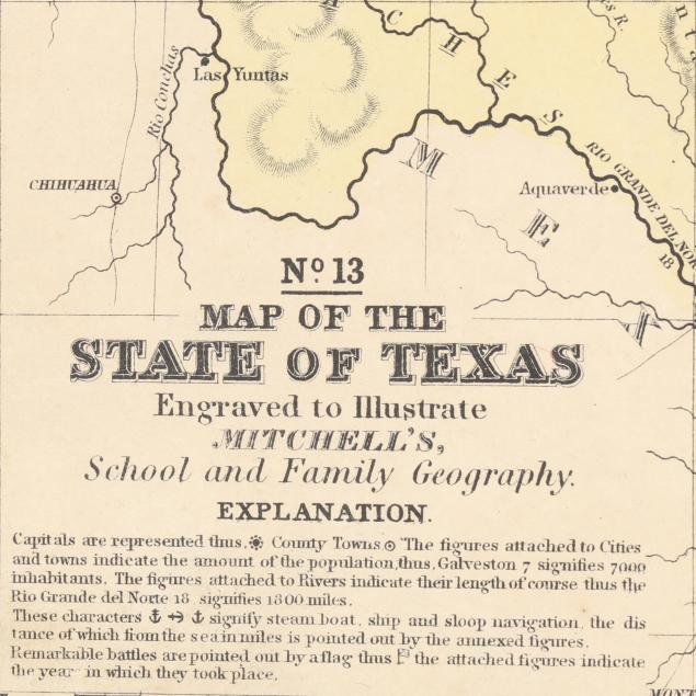 S[amuel] Augustus Mitchell. NO. 13 MAP OF THE STATE OF TEXAS ENGRAVED TO ILLUSTRATE MITCHELL'S SCHOOL AND FAMILY GEOGRAPHY. Philadelphia: Thomas Cowperthwait & Co, 1846. From