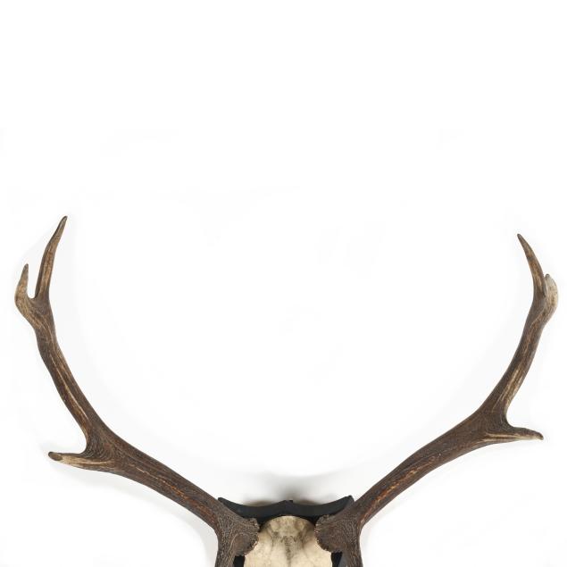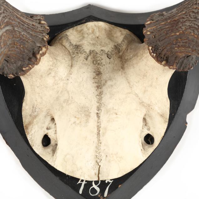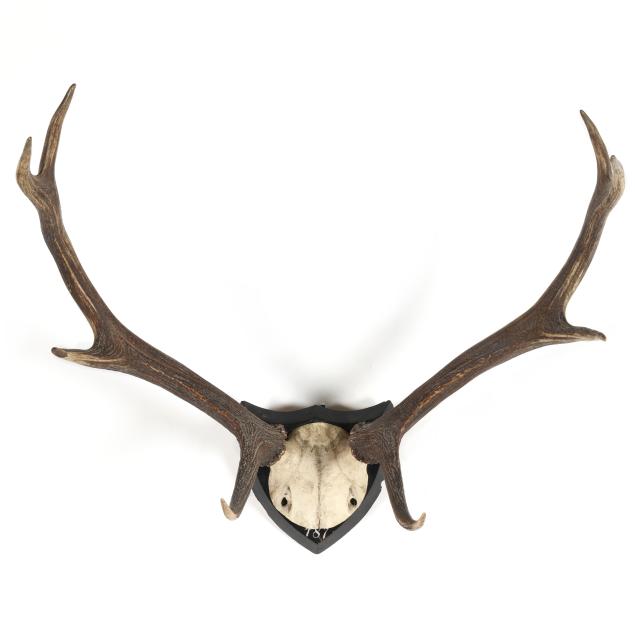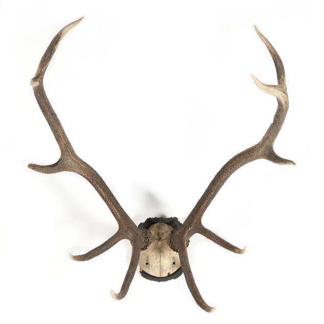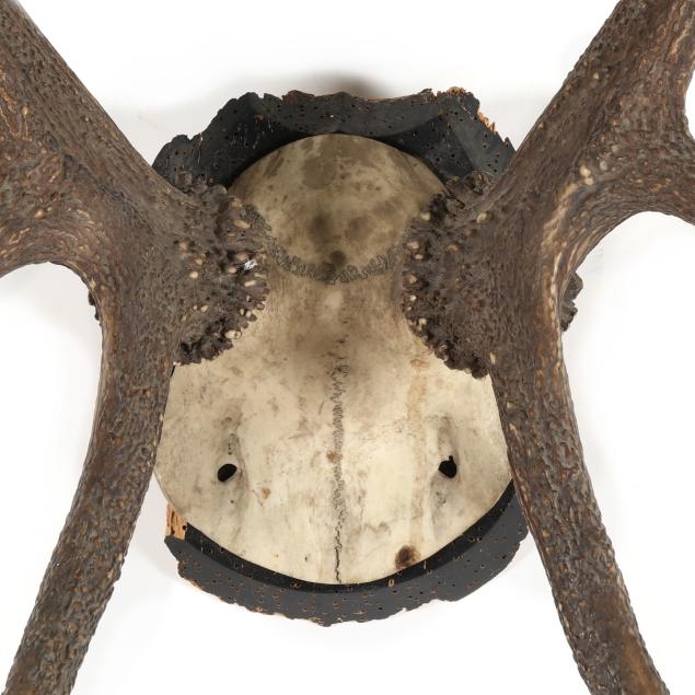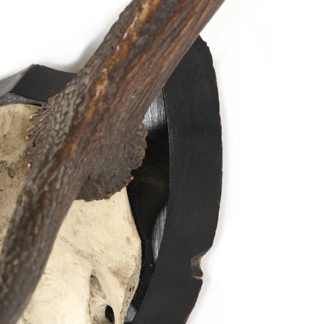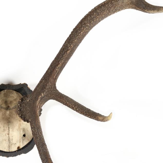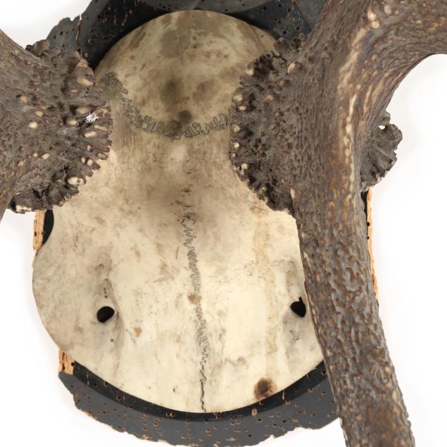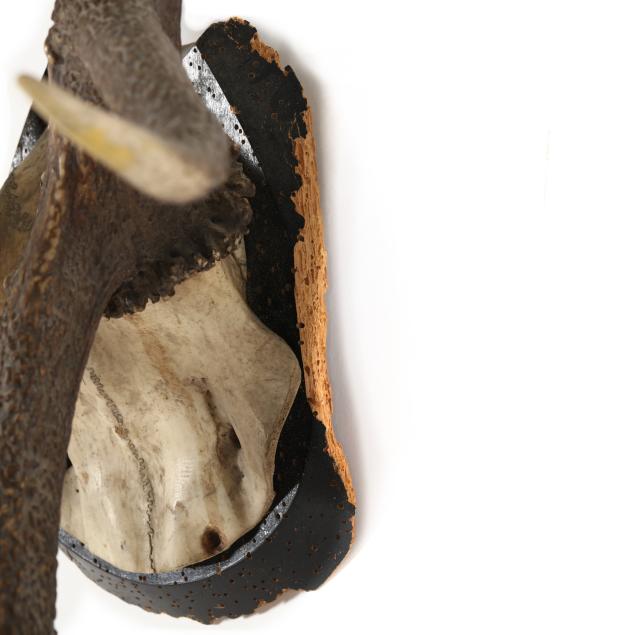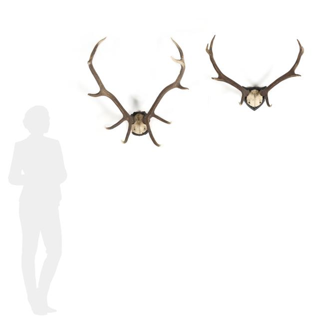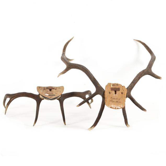 Private Collection of a Lady, Pine Level, North Carolina each sets of antlers are in overall very good estate condition, smaller plaque is in good condition, larger plaque has decay and loss of wood.
