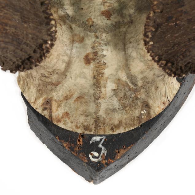 each sets of antlers are in overall very good estate condition, plaque 149 has stable horizontal split on right side, plaque 3 has missing wood and decay.