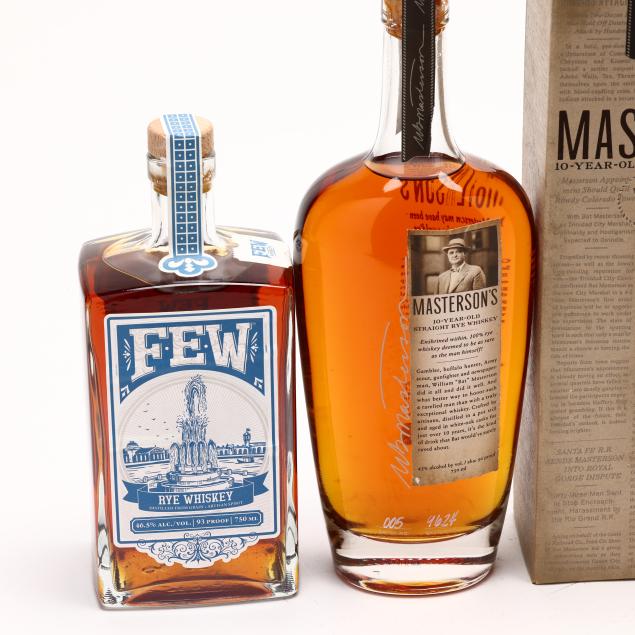 NV, Masterson's 10 Year Old Straight Rye Whiskey, Sonoma, CA, 45%, batch no. 005 (bottle no. 9624) & batch no. 003 (bottle no. 5400), 2bn, 2 sealed, 1ocb (2 750 ml)