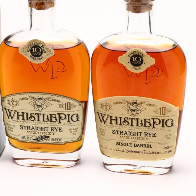 NV, WhistlePig Single Barrel Rye, Straight Rye Whiskey, 10 Years Old, Finished in Bourbon Barrels, Shoreham, Vermont, 57.45, bottled exclusively for World Beverages, Duluth, GA, barrel no. 15-52, ms, slightly torn plastic top, sealed (1 750 ml)