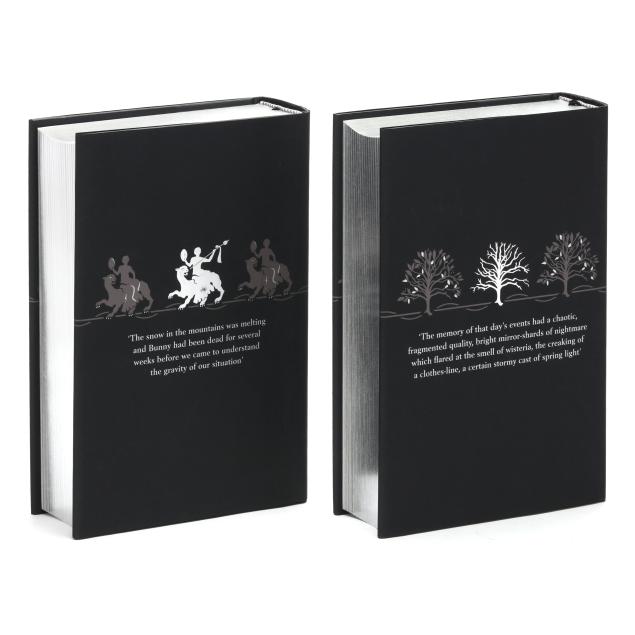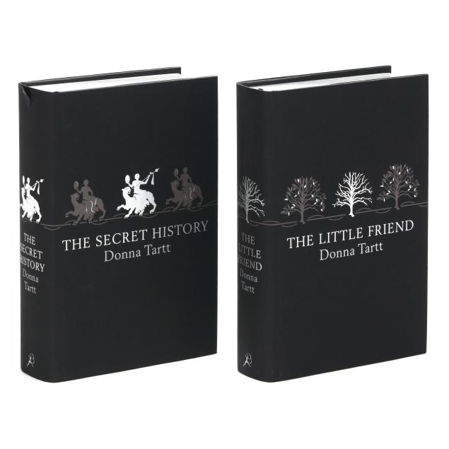 Donna Tartt. THE SECRET HISTORY [and] THE LITTLE FRIEND. (2) volumes. London: Bloomsbury, 2009. Limited edition; no. 844 of 1000 copies. Both signed by the author on the limitation page. Hardcover. Black paper-covered boards decorated in blind with silver lettering on the spine, all edges silver, with black ribbon bookmark; in pictorial dust jackets and presented in a matching slipcase. 8vo; [viii], 628, [4]pp.; [x], 555, [11]pp.