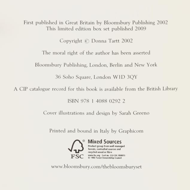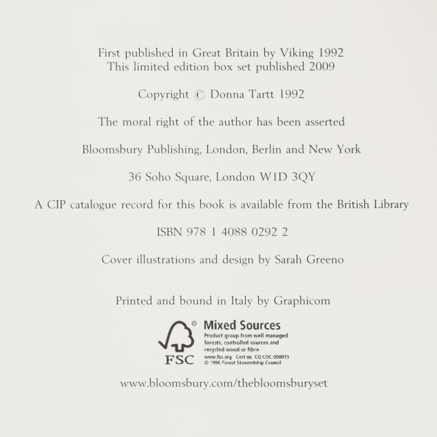 From the Collection of Bruce R. Kuniholm, University Distinguished Service Professor of Public Policy and History Emeritus, Founding Dean Emeritus of the Sanford School of Public Policy at Duke University, Durham, North Carolina A limited edition box set containing Tartt's first and second novel.