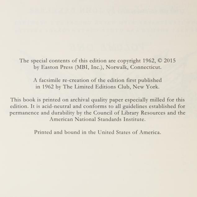 From the Collection of Bruce R. Kuniholm, University Distinguished Service Professor of Public Policy and History Emeritus, Founding Dean Emeritus of the Sanford School of Public Policy at Duke University, Durham, North Carolina A facsimile re-creation of "The legendary 1962 Limited Editions Club edition illustrated with watercolors and drawings by Carl Bodmer and other contemporary artists."