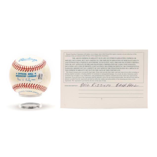 Rawlings leather baseball signed by Phil Rizzuto (1917-2007), Guarantee of Authenticity from Field of Dreams with identification number 19850.
