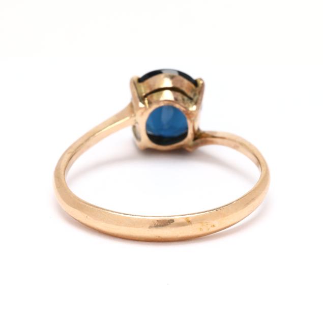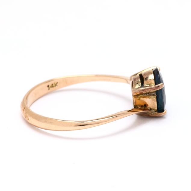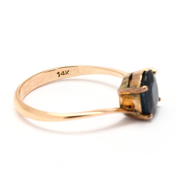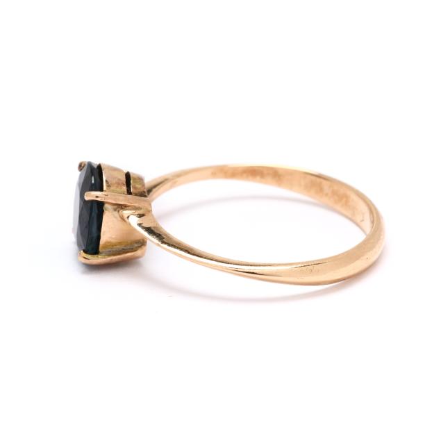 Bypass ring centered on a prong set oval cut sapphire (7.25 x 6.6 x 3.5mm) weighing approximately 1.40 carats, stamped 14K.