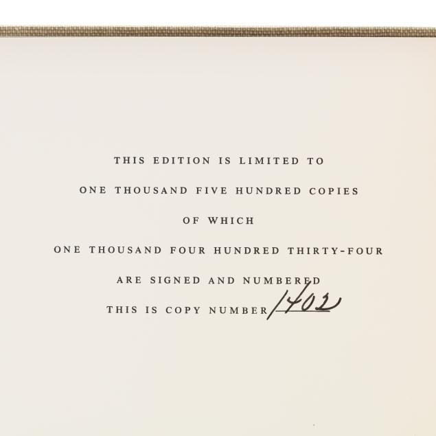 From the Collection of Bruce R. Kuniholm, University Distinguished Service Professor of Public Policy and History Emeritus, Founding Dean Emeritus of the Sanford School of Public Policy at Duke University, Durham, North Carolina The volume with one area of minor edge wear, indentation along the spine and very slight separation from text block, and with light wear and subtle staining at spine ends; glue residue at top edge; infrequent small spots of grime, otherwise a pristine interior; jacket with scuffing; slipcase with scuffed label, some splitting and separation at edges, chips and a large tear to the paper on the top panel, and some sunning/discoloration. A very good or better copy in a good slipcase.