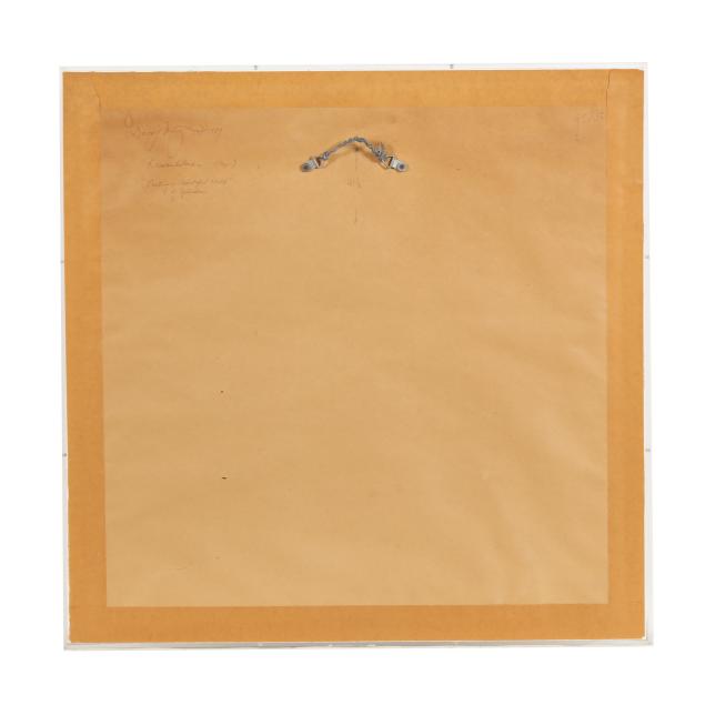 1989, mixed media sculpture including feathers, shark's teeth, quills, wood, thread, and paper mounted to white painted wood backing in plexiglass shadow box frame, signed with date and title to verso.