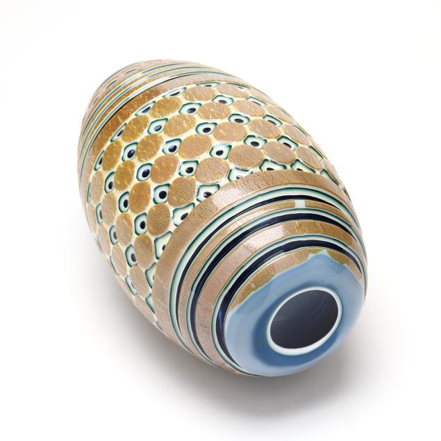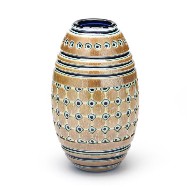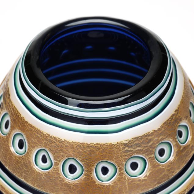 Likely studio made, comprised of around seven layers of glass with cut 'eye' motifs, illegibly signed to underside.