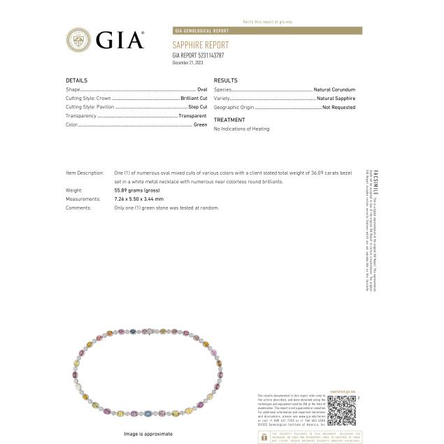 With GIA report stating one (1) green stone tested as Natural Corundum / Natural Sapphire with no indications of heating.