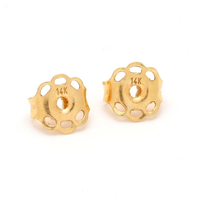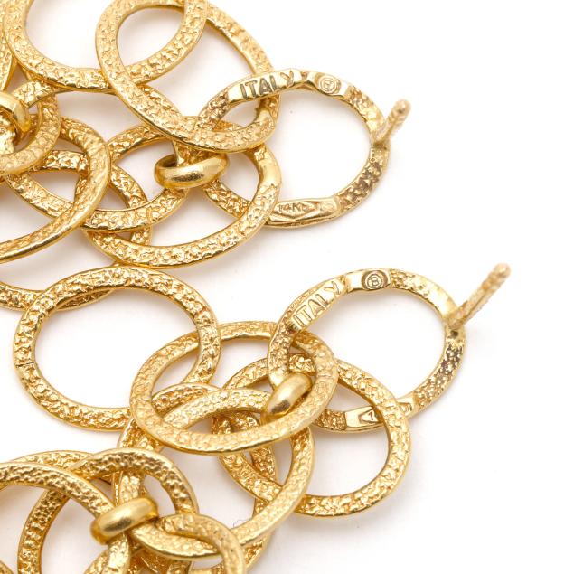 Textured oval stud earring suspending multiple textured oval links in a chandelier style, completed with posts and friction backs, stamped with maker's mark and Italy / 14KT.