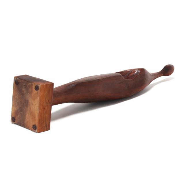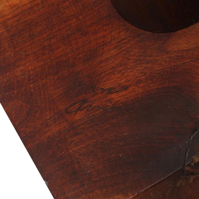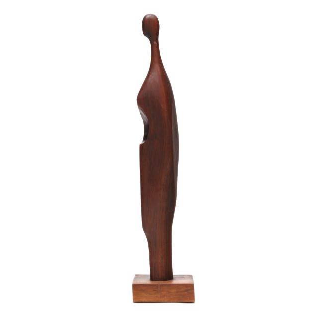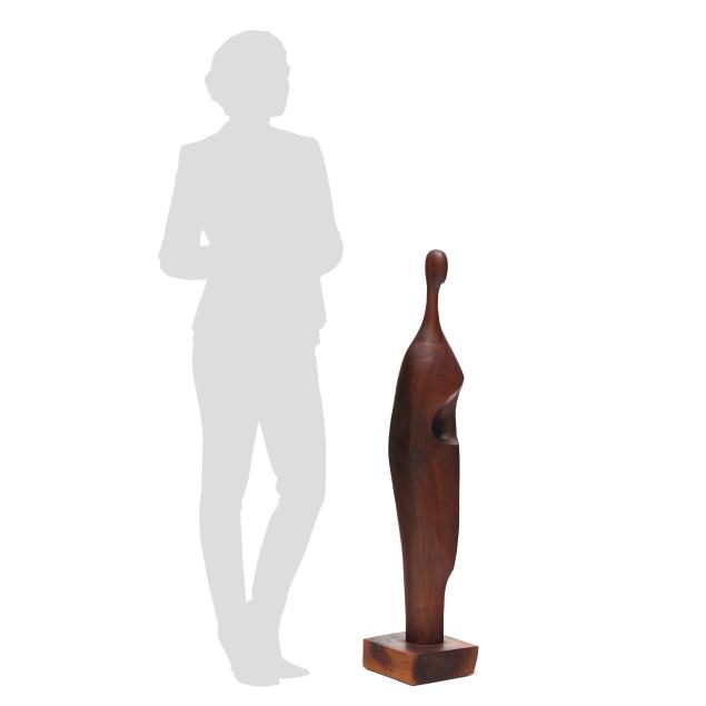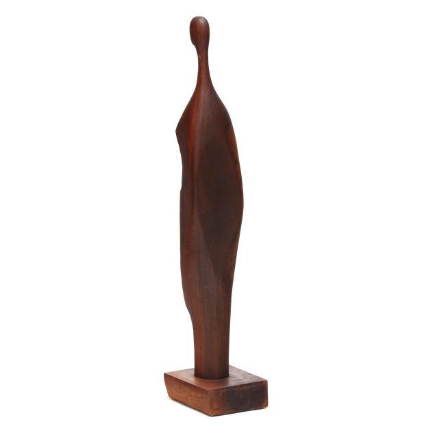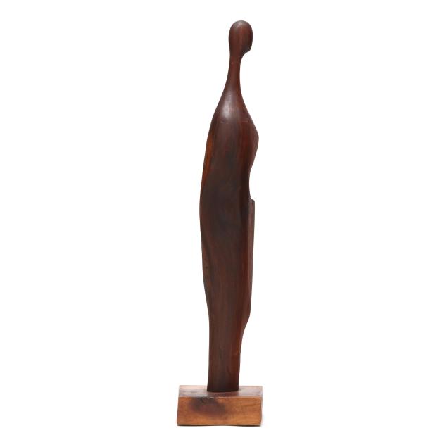 Solid walnut, a carved figural form mounted on a wooden base; signed "Marc Avrin" to top of base.