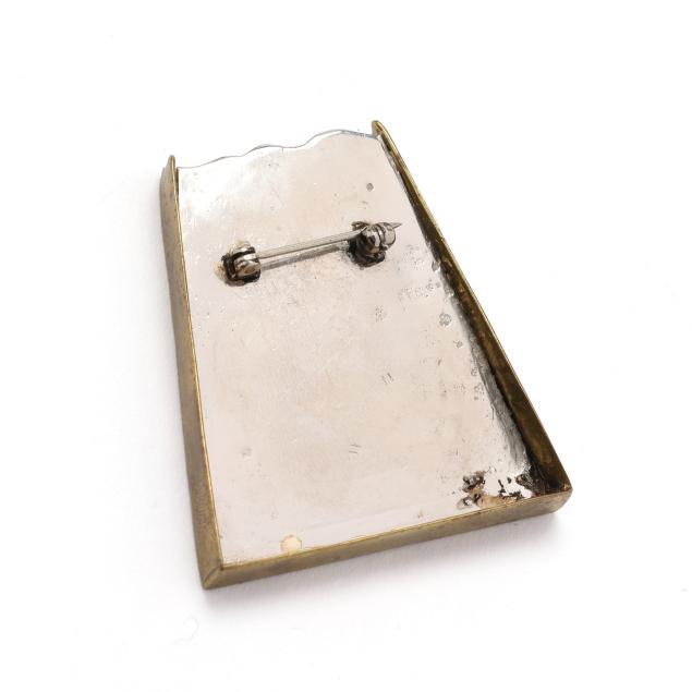 Brooch 1 3/4 in.; stand 4 1/2 x 2 1/2 x 3/4 in.