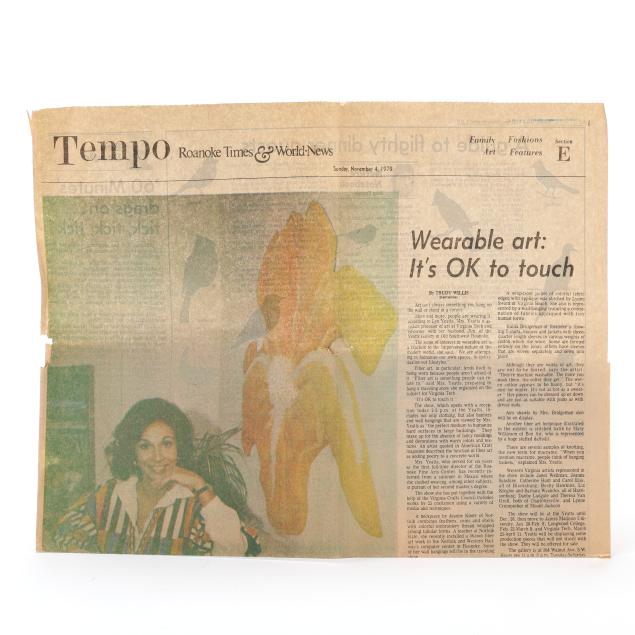 Lyn co-owned the Yeatts Gallery in Old Southwest Roanoke which featured a traveling exhibit on "Wearable Art" in Nov. 1979, which travelled to James Madison University, Longwood College, and Virginia Tech.