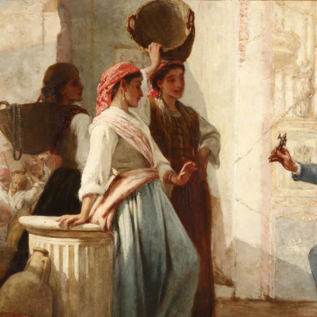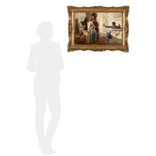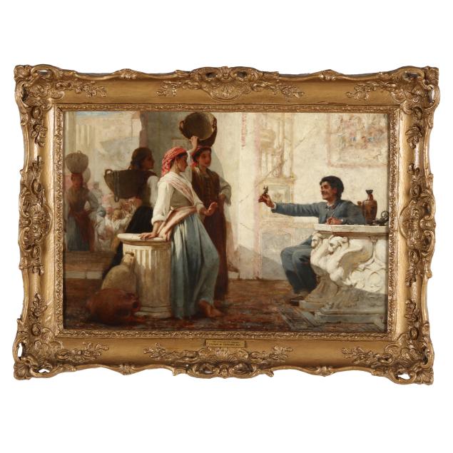 Frank William Warwick Topham Jr. was an English painter renowned for his genre scenes, Italian landscapes, historical subjects, and refined watercolors. Trained by his father, watercolorist Francis W. Topham, and later at the Royal Academy Schools and under Charles Gleyre in Paris, he developed a style marked by warmth, narrative detail, and technical finesse. A frequent traveler to Italy, he captured its architecture and daily life with sensitivity, exhibiting widely at the Royal Academy, the Royal Institute of Painters in Watercolours, and the Royal Institute of Oil Painters, where he became a member. His works, from intimate watercolors to ambitious oils, remain valued on the art market, reflecting both the elegance of his vision and the enduring appeal of Victorian and Edwardian genre painting.